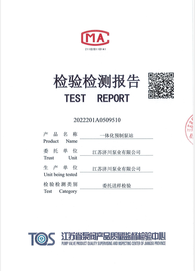 一體化泵站檢測(cè)報(bào)告